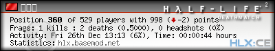 | Rank | Map | Kills | % | Ratio | Deaths | % | Ratio | K:D | Headshots | % | Ratio | HS:K |