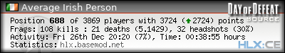 | Rank | Server | Kills | % | Ratio | Deaths | K:D | Headshots | Percentage of Headshots | % | HS:K |