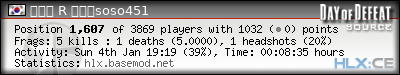 | Rank | Map | Kills | % | Ratio | Deaths | % | Ratio | K:D | Headshots | % | Ratio | HS:K |
