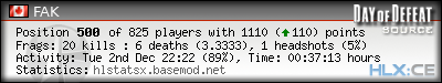 Rank Map Kills % Ratio Deaths % Ratio K:D   Headshots % Ratio HS:K