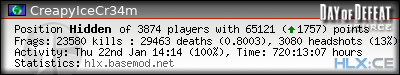 | Rank | Server | Kills | % | Ratio | Deaths | K:D | Headshots | Percentage of Headshots | % | HS:K |