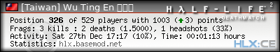 | Headshots: | 1 (1*) | |