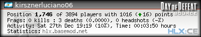 | Rank | Map | Kills | % | Ratio | Deaths | % | Ratio | K:D | Headshots | % | Ratio | HS:K |