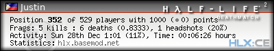 | Headshots: | 1 (1*) | |