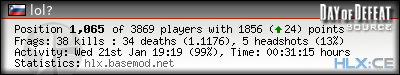 | Rank | Server | Kills | % | Ratio | Deaths | K:D | Headshots | Percentage of Headshots | % | HS:K |