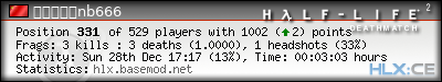 | Rank | Map | Kills | % | Ratio | Deaths | % | Ratio | K:D | Headshots | % | Ratio | HS:K |