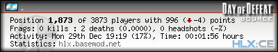 | Rank | Map | Kills | % | Ratio | Deaths | % | Ratio | K:D | Headshots | % | Ratio | HS:K |