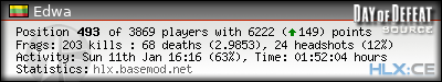 | Rank | Server | Kills | % | Ratio | Deaths | K:D | Headshots | Percentage of Headshots | % | HS:K |