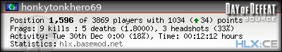 | Rank | Map | Kills | % | Ratio | Deaths | % | Ratio | K:D | Headshots | % | Ratio | HS:K |