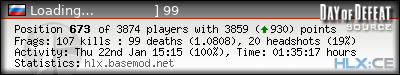 | Rank | Server | Kills | % | Ratio | Deaths | K:D | Headshots | Percentage of Headshots | % | HS:K |