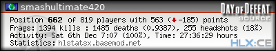 | Rank | Role | Joined | % | Ratio | Kills | Deaths | K:D |
