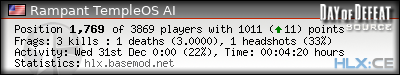 | Rank | Map | Kills | % | Ratio | Deaths | % | Ratio | K:D | Headshots | % | Ratio | HS:K |