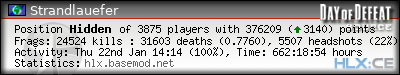 | Rank | Server | Kills | % | Ratio | Deaths | K:D | Headshots | Percentage of Headshots | % | HS:K |