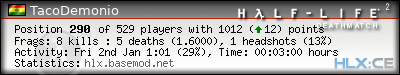 | Headshots per Kill: | 0.1250 (0.1250*) | |