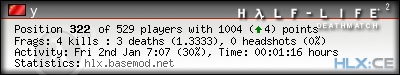 | Rank | Map | Kills | % | Ratio | Deaths | % | Ratio | K:D | Headshots | % | Ratio | HS:K |