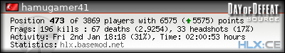 | Rank | Server | Kills | % | Ratio | Deaths | K:D | Headshots | Percentage of Headshots | % | HS:K |