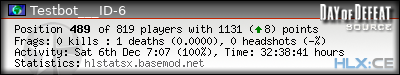 | Rank | Role | Joined | % | Ratio | Kills | Deaths | K:D |