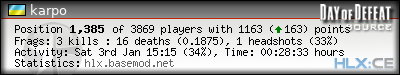 | Rank | Map | Kills | % | Ratio | Deaths | % | Ratio | K:D | Headshots | % | Ratio | HS:K |