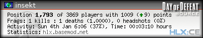 | Rank | Map | Kills | % | Ratio | Deaths | % | Ratio | K:D | Headshots | % | Ratio | HS:K |