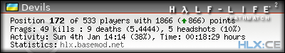 | Rank | Server | Kills | % | Ratio | Deaths | K:D | Headshots | Percentage of Headshots | % | HS:K |