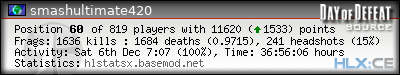 | Rank | Server | Kills | % | Ratio | Deaths | K:D | Headshots | Percentage of Headshots | % | HS:K |