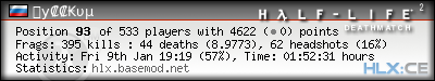 | Rank | Server | Kills | % | Ratio | Deaths | K:D | Headshots | Percentage of Headshots | % | HS:K |