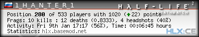 | Rank | Map | Kills | % | Ratio | Deaths | % | Ratio | K:D | Headshots | % | Ratio | HS:K |