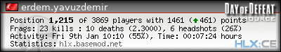 | Rank | Server | Kills | % | Ratio | Deaths | K:D | Headshots | Percentage of Headshots | % | HS:K |
