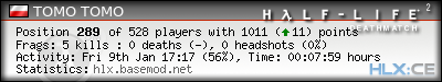 | Rank | Map | Kills | % | Ratio | Deaths | % | Ratio | K:D | Headshots | % | Ratio | HS:K |