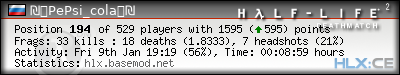 | Rank | Server | Kills | % | Ratio | Deaths | K:D | Headshots | Percentage of Headshots | % | HS:K |