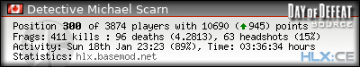 | Rank | Server | Kills | % | Ratio | Deaths | K:D | Headshots | Percentage of Headshots | % | HS:K |