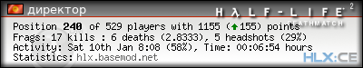| Headshots per Kill: | 0.2941 (0.2941*) | |