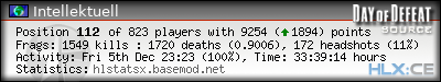 | Rank | Server | Kills | % | Ratio | Deaths | K:D | Headshots | Percentage of Headshots | % | HS:K |