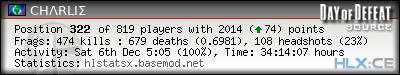 | Rank | Role | Joined | % | Ratio | Kills | Deaths | K:D |