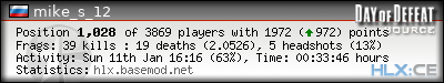 | Rank | Server | Kills | % | Ratio | Deaths | K:D | Headshots | Percentage of Headshots | % | HS:K |
