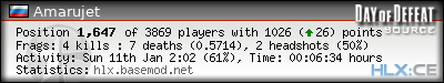 | Rank | Map | Kills | % | Ratio | Deaths | % | Ratio | K:D | Headshots | % | Ratio | HS:K |