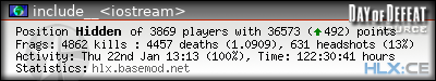 | Rank | Server | Kills | % | Ratio | Deaths | K:D | Headshots | Percentage of Headshots | % | HS:K |