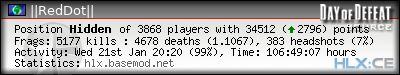 | Rank | Server | Kills | % | Ratio | Deaths | K:D | Headshots | Percentage of Headshots | % | HS:K |