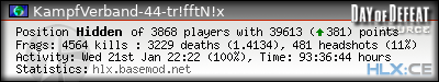 | Rank | Server | Kills | % | Ratio | Deaths | K:D | Headshots | Percentage of Headshots | % | HS:K |