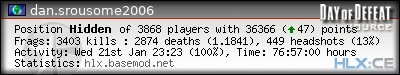 | Rank | Victim | Kills | % | Ratio | Deaths | % | Ratio | K:D | Headshots | % | Ratio | HS:K |