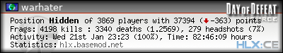 | Rank | Server | Kills | % | Ratio | Deaths | K:D | Headshots | Percentage of Headshots | % | HS:K |