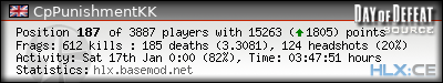 | Rank | Server | Kills | % | Ratio | Deaths | K:D | Headshots | Percentage of Headshots | % | HS:K |