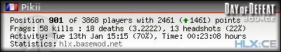 | Rank | Victim | Kills | % | Ratio | Deaths | % | Ratio | K:D | Headshots | % | Ratio | HS:K |