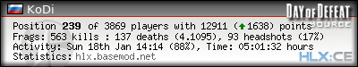 | Rank | Server | Kills | % | Ratio | Deaths | K:D | Headshots | Percentage of Headshots | % | HS:K |