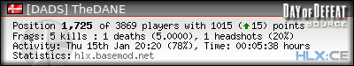 | Rank | Map | Kills | % | Ratio | Deaths | % | Ratio | K:D | Headshots | % | Ratio | HS:K |