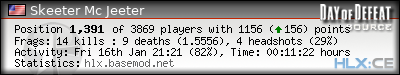 | Rank | Map | Kills | % | Ratio | Deaths | % | Ratio | K:D | Headshots | % | Ratio | HS:K |