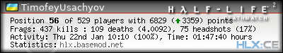 | Rank | Server | Kills | % | Ratio | Deaths | K:D | Headshots | Percentage of Headshots | % | HS:K |