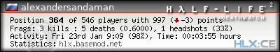 | Headshots: | 1 (1*) | |