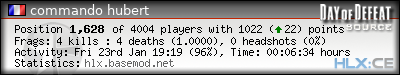| Rank | Map | Kills | % | Ratio | Deaths | % | Ratio | K:D | Headshots | % | Ratio | HS:K |