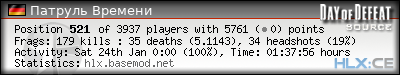 | 1 | »» 24/7 Sniper Server // by www.BASEMOD.net [EU] | 179 | 100.00% | 35 | 5.1143 | 34 | 100.00% | 0.1899 |
